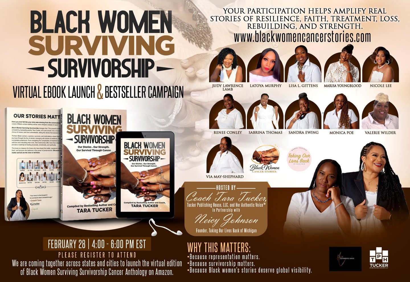 Neicy Johnson has a heart for women affected by cancer, and when she met Tara, they hit it off immediately. Neicy founded her organization in 2019 and has helped countless survivors. She was excited to partner with Tara in this project and share her own story.
